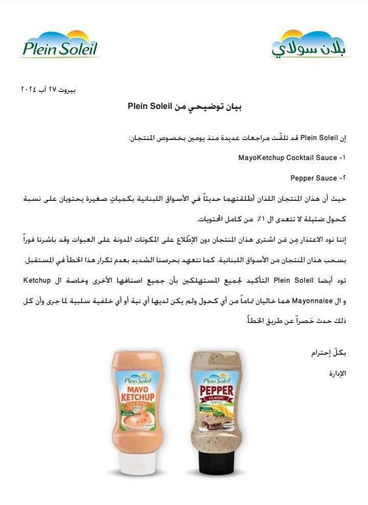 بسحب هذان المنتجان من الأسواق اللبنانية. كما نتعهد بحرصنا الشديد بعدم تكرار هذا الخطأ في المستقبل.