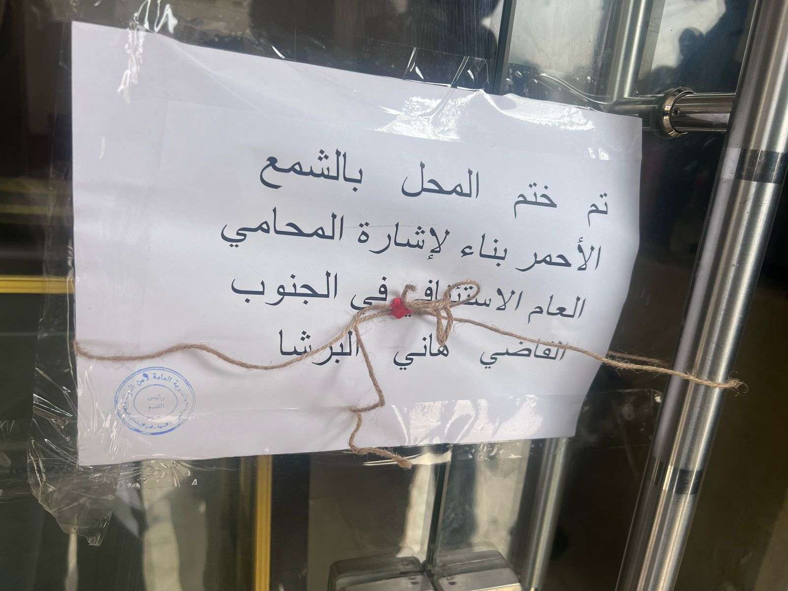 وكانت النتيجة ختم معمل للحلويات بالشمع الاحمر باشارة من المحامي العام الاستئنافي في الجنوب القاضي هاني البرشا وتنظيم ثلاثة محاضر ضبط بحق معمل حلويات بسبب وجود فئران في منطقة التحضير وبحق ملحمتين بسبب بيع لحم جاموس مجمد على انه طازج دون الاعلان عنه وتم سحب سبع عينات توزعت بين جلاب وحلويات وارسلت الى المختبر لاجراء الفحص اللازم .