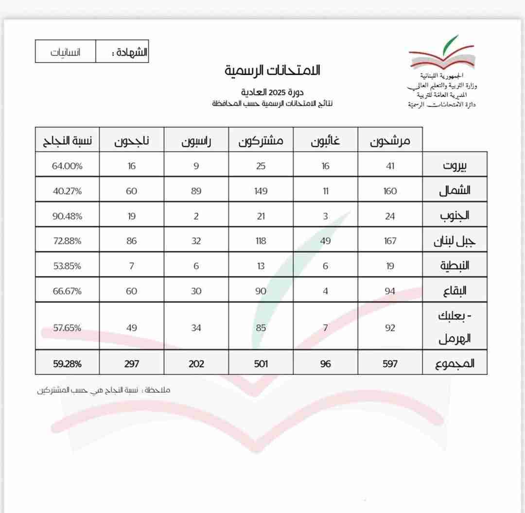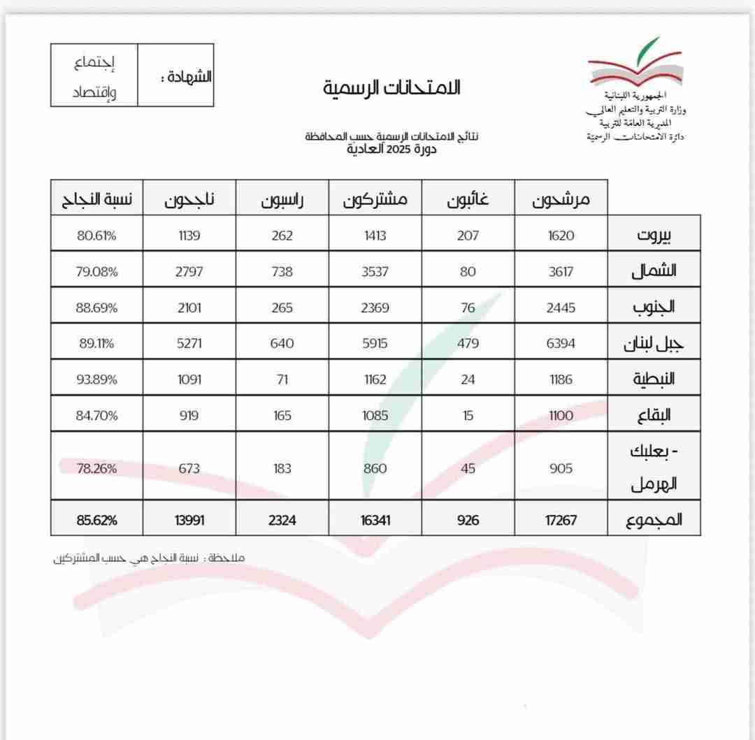 اللافت أن المدارس الرسمية تفوقت في فرعي الاقتصاد والاجتماع والعلوم الإنسانية، بينما المدارس الخاصة حققت نتائج أعلى في العلوم العامة وعلوم الحياة.