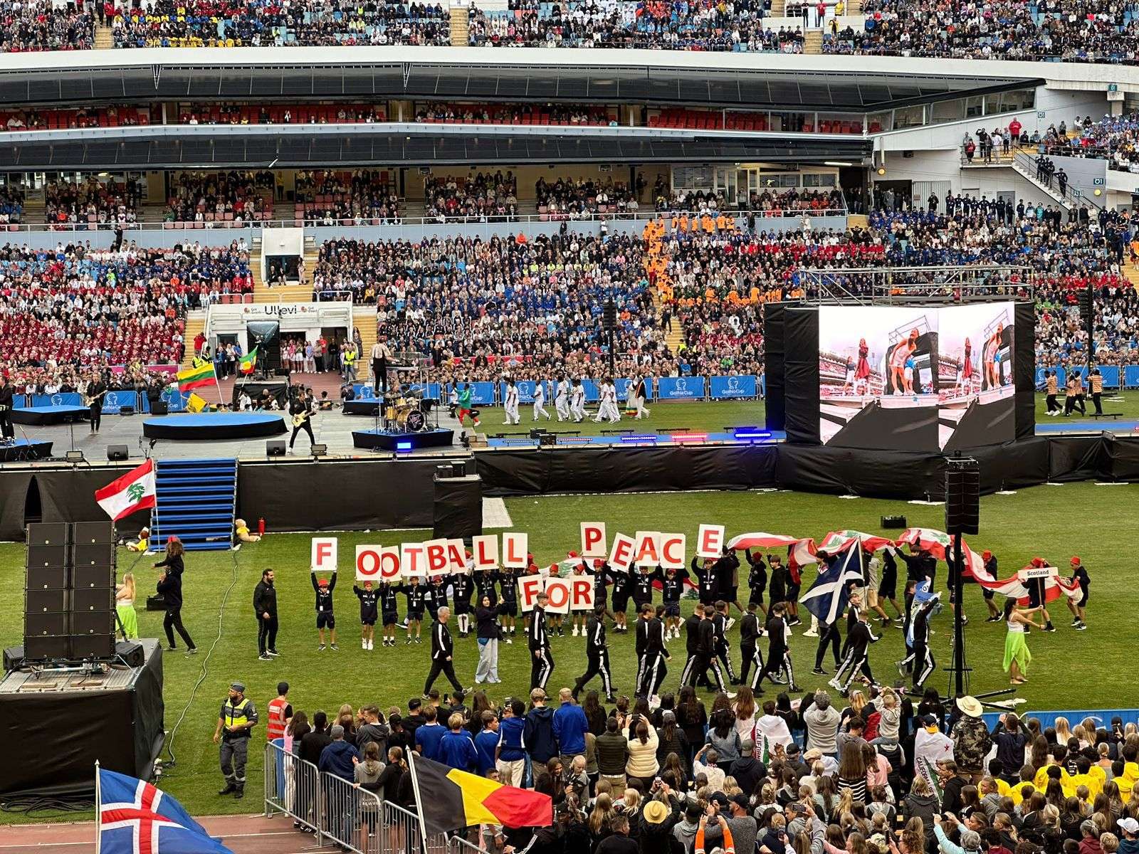وسجّلت بعثة “BFA” حضوراً لافتاً في حفل الافتتاح الذي ضمّ ١٩١١ فريقاً من ٧٤ بلداً بحيث رفعت لافتة كبيرة عند دخولها كتب عليها: “كرة القدم من اجل السلام”.