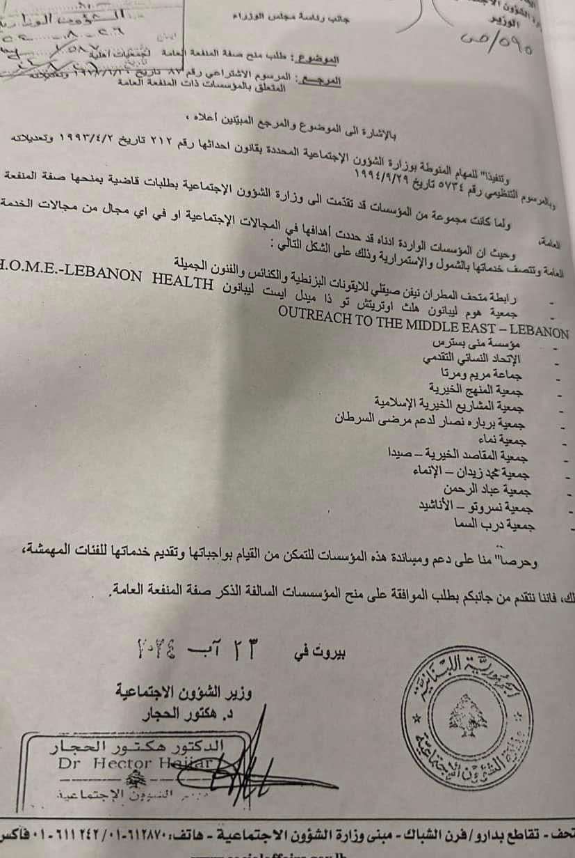 الوزير هكتور حجار يلي مفروض مقاطع جلسات مجلس الوزراء ، مش مقاطع المحاصصة . مرفقا تجدون طلب الوزير من مجلس الوزراء منح صفة المنفعة العامة لمجموعة من الجمعيات الأهلية (ngo) ، شو يعني منفعة عامة ؟ يعني إعفاءات ضريبية وجمركية ! يعني الجمعيات المذكورة بصير فيها تستورد بلا جمرك ، ربما بعضها يستحق تبعا لعملها في المجال الإنساني ! وربما بعضها لا ! ونظرة سريعه على اسماء الجمعيات لا يضع مجالا للشك ان اختيارها جاء وفق لمنطق التنفيعات والمحاصصة وليس الجدارة والاستحقاق .