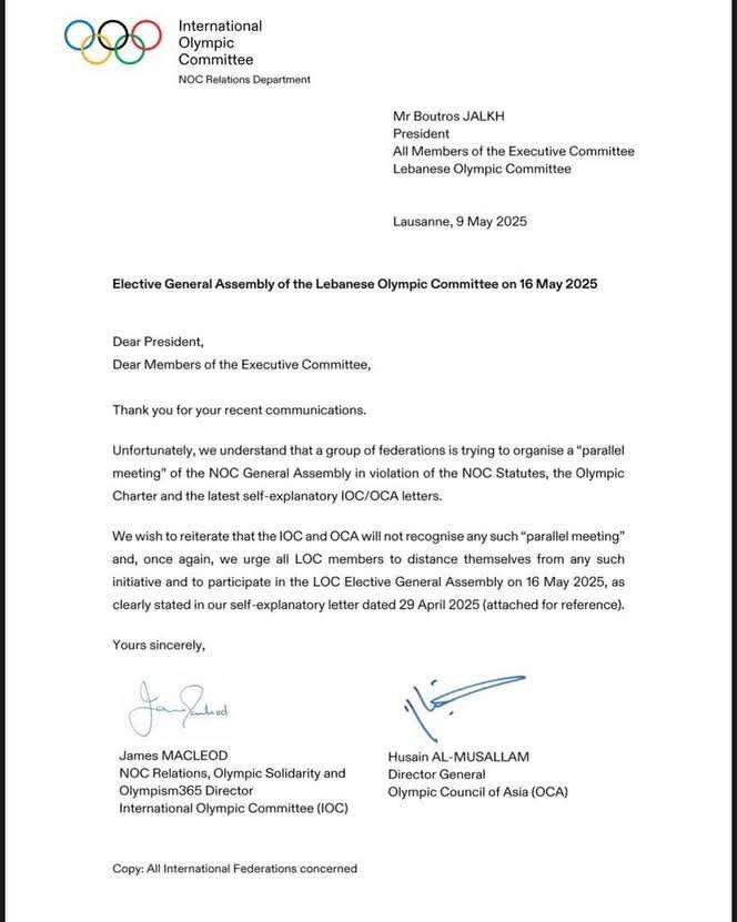 بسبب المصالح والخلافات الشخصية للجنة الاولمبية اللبنانية، تم ارسال الإنذار الثاني من اللجنة الاولمبية الدولية وعلى اثرها من المتوقع ان يتوقف لبنان دولياً في “جميع الرياضات” خلال ال ٢٤ ساعة القادمة.
