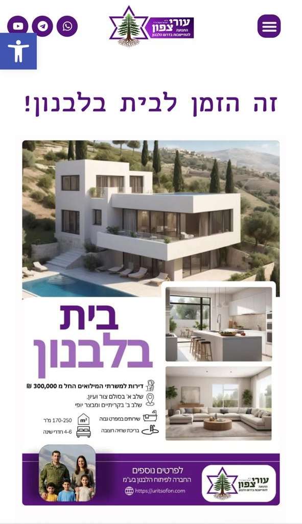 إسرائيل بدأت بالترويج لشراء بيوت إسـ.ـرائيلية في جنوب لبنان ضمن مستوطنات. إنه مخطط إسـ.ـرائيل الكبرى الذي لا يعلم به الكثير عن خطة إسـ.ـرائيل في إلغاء المقاومة في لبنان. ندعو الجميع للتكاتف ضد عدو غاشم يعمل على محو لبنان وإلغاء العرق العربي في الإقليم!!
