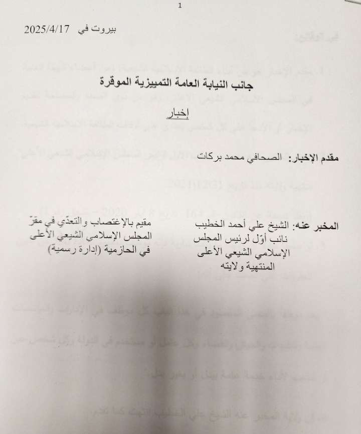 اليوم أفي بوعدي وأتقدّم بإخبار أوليّ أمام النيابة العامة التمييزية في بيروت.