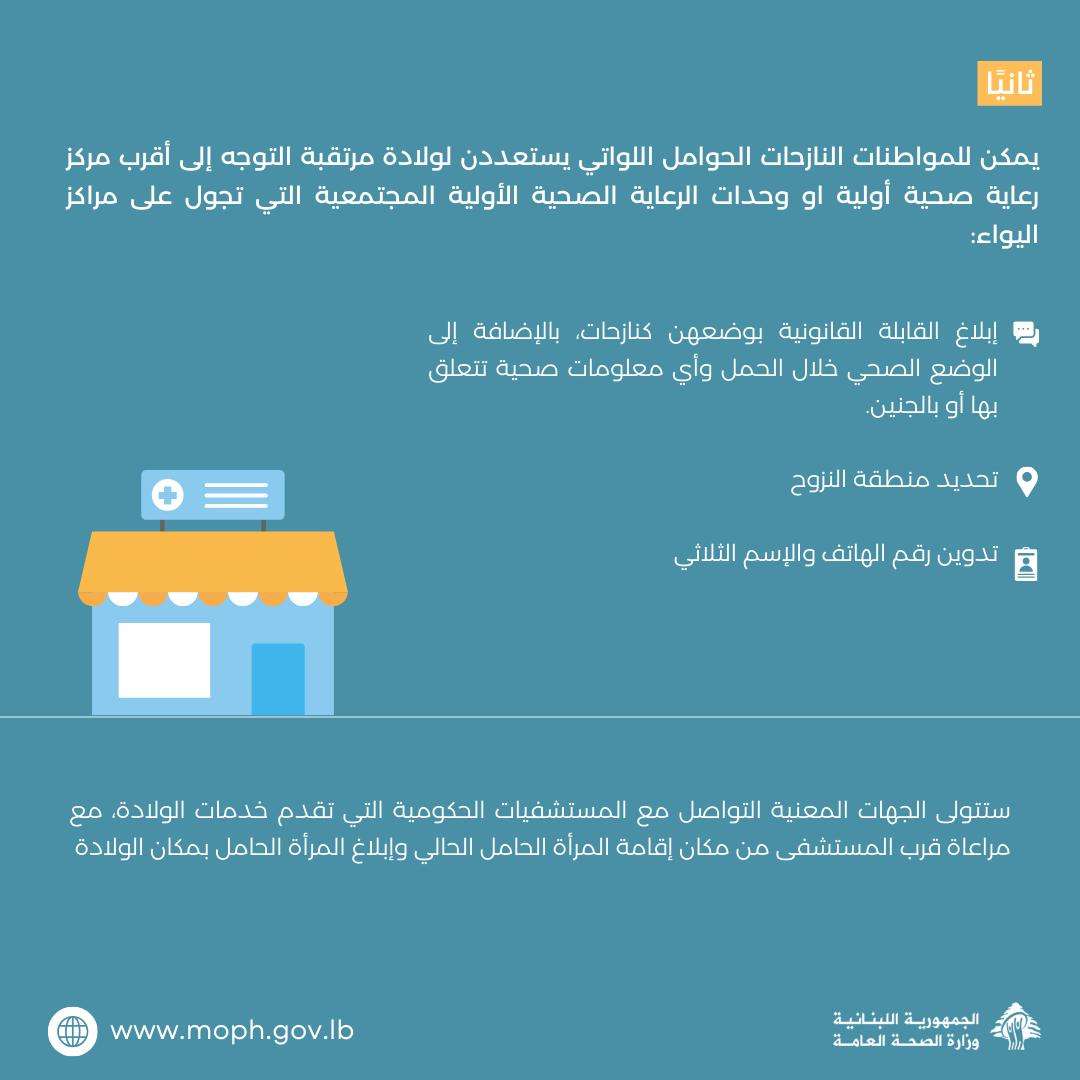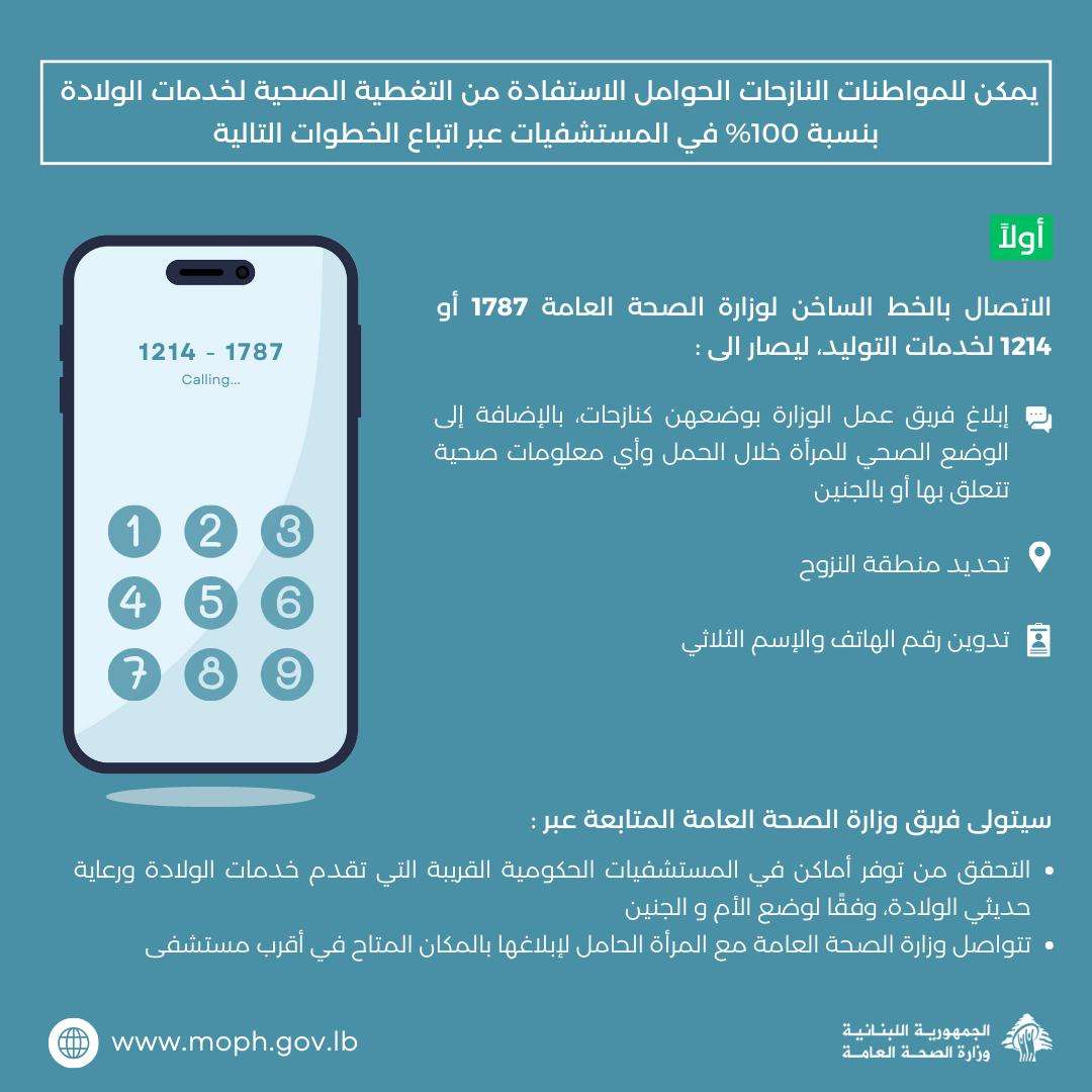 وطبلت الاتصال على ١٢١٤ او ١٧٨٧ للحصول على المزيد من المعلومات، كما تجدون مرفقًا مجموعة صور فيها معلومات تهمّ النازحات الحوامل.
