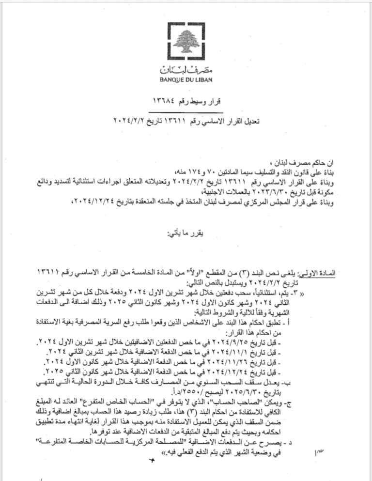 قرار هام جداً من مصرف لبنان