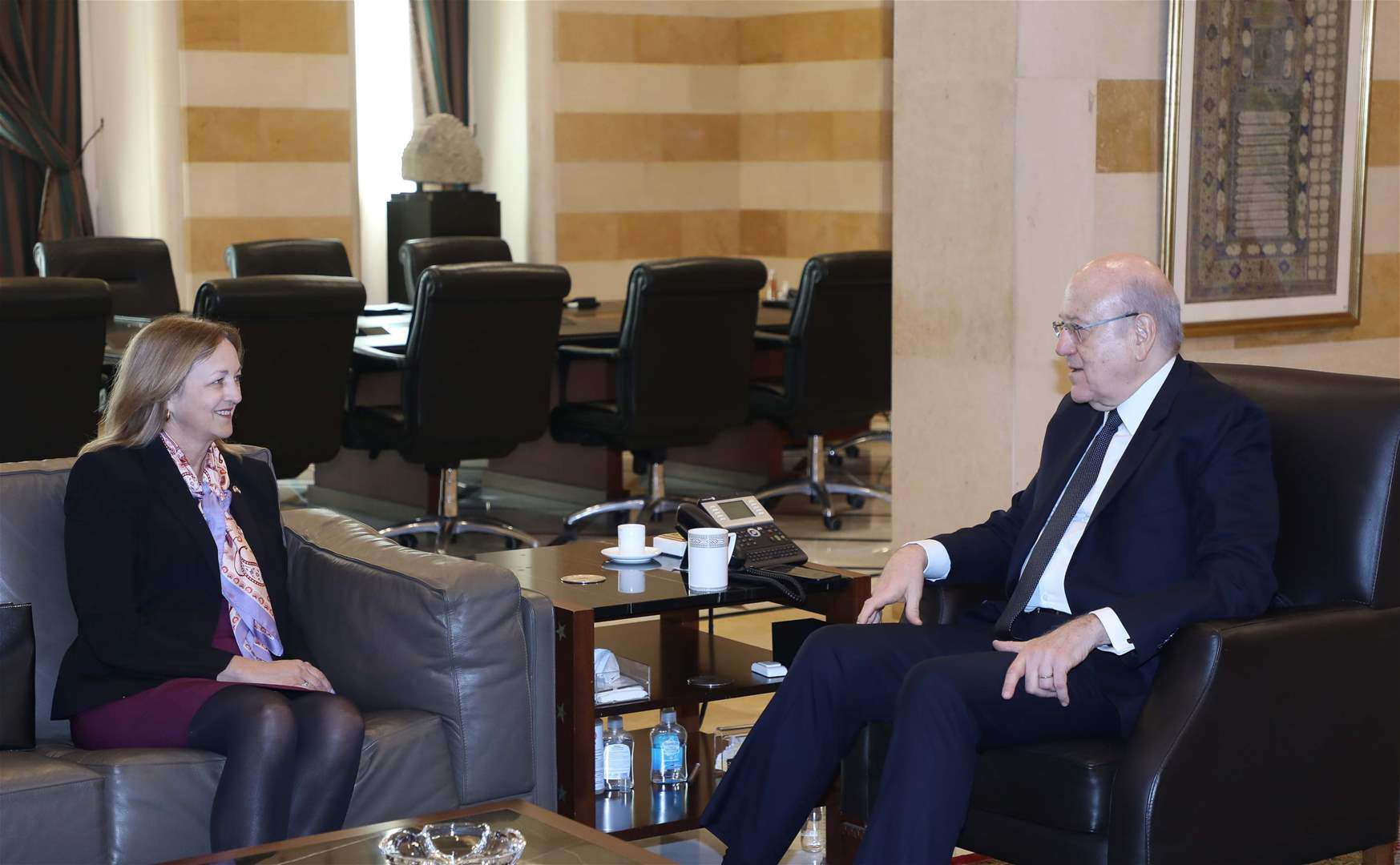 وفي خلال اللقاء اشادت السفيرة بجهود الرئيس ميقاتي خلال توليه رئاسة الحكومة وبالتعاون القائم معه.