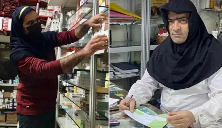 رجال إيرانيون يرتدون الحجاب.. تضامنا مع العاملات بالصيدليات