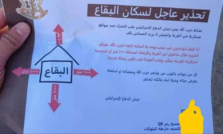الحزب يحذر حذّر الإعلام الحـ.ـربي في حـ.ـزب الله من باركود ضمن المناشير التي ألقتها الطائرات الحـ.ـربية الاسـ.ـرائيلية. وتفيد المناشير أن…