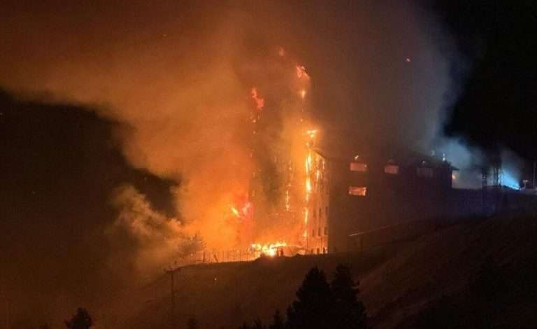 حـ ـريق مدمر في فندق شهير! اندلع حريق بفندق شهير في منتجع كارتال قايا للتزلج بمدينة بولو التركية اليوم…