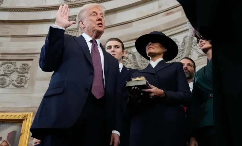 ترامب يؤدي اليمين دون الكتاب المقدس أدى الرئيس الأميركي دونالد ترامب اليمين الدستورية خلال حفل تنصيبه وهو رافع يده…